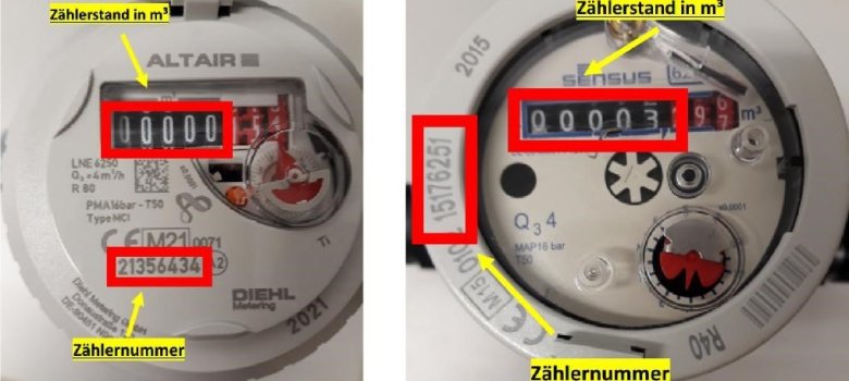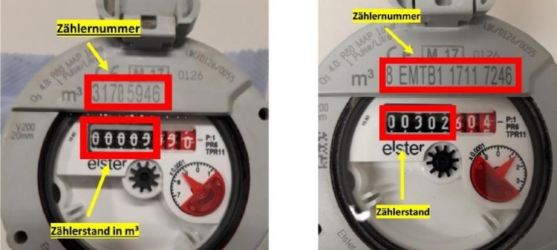 Bitte beachten Sie, dass in unserem Verbandsgebiet Wasserzähler mit und ohne Komma-stellen eingebaut sind. Geben Sie die Zählerstände ohne Kommastellen an (nur die schwarzen Zahlen)